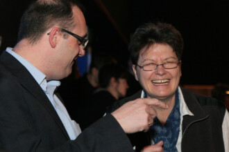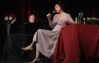 Musik-Kabarettistin Gabriele Deutsch und Pianist David Wagner nahmen im April 2013 beim Benefizkabarett im Kikas in Aigen-Schlägl die Hochs und Tiefs von Zweierbeziehungen humorvoll unter die Lupe.
