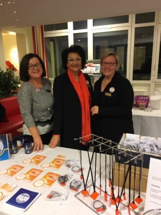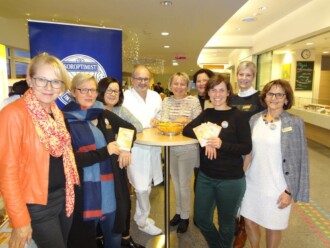 Viele fleißige Hände waren nötig, um am 24. November und 25. November 2020 das Eingangsportal des Landeskrankenhauses Rohrbach-Berg in Orange als Zeichen gegen Gewalt gegen Frauen erstrahlen zu lassen und unseren Infostand zu betreiben. Dort wurden nicht nur alkoholfreier Orangenpunsch ausgeschenkt und Früchtebrot von Gusti Stadlbauer für den guten Zweck verkauft, sondern auch oranger Glasschmuck von Monika Kehrer, die diesen gekonnt in ihrer Glaserei Falkner umsetzen ließ. Obendrein wurden orange eingepackten Süßigkeiten verteilt, die das Eis für den Erstkontakt mit den Besucherinnen und Besuchern brachen. Die Idee dazu kam von Clubschwester Pauline Sleska.