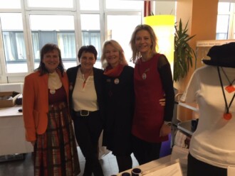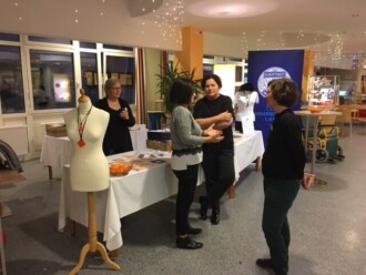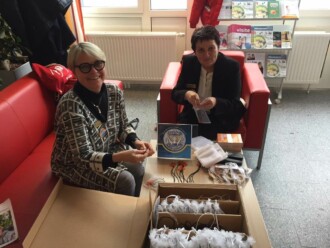Die Spitalsmitarbeiter, allen voran der ärztliche Leiter Primarius Peter Stumpner, kamen nicht nur auf Punsch und Plausch vorbei, sondern es trugen auch viele unseren orangen Anstecker „Stoppt Gewalt“.