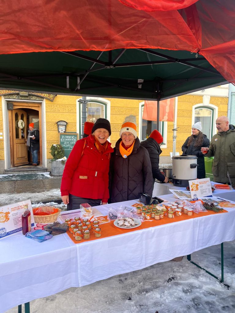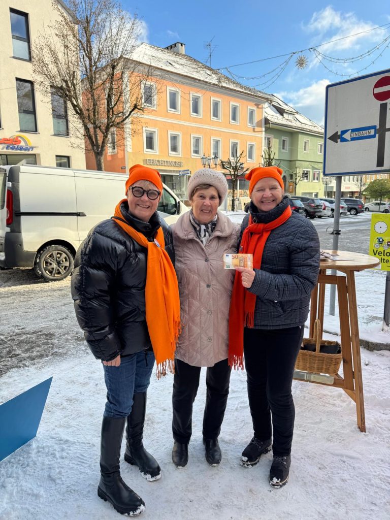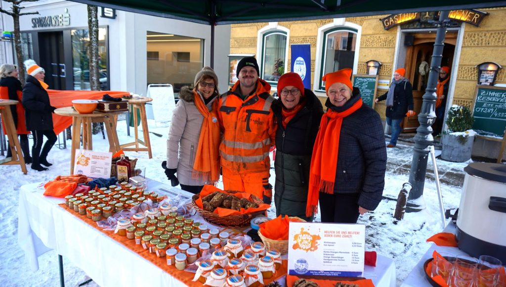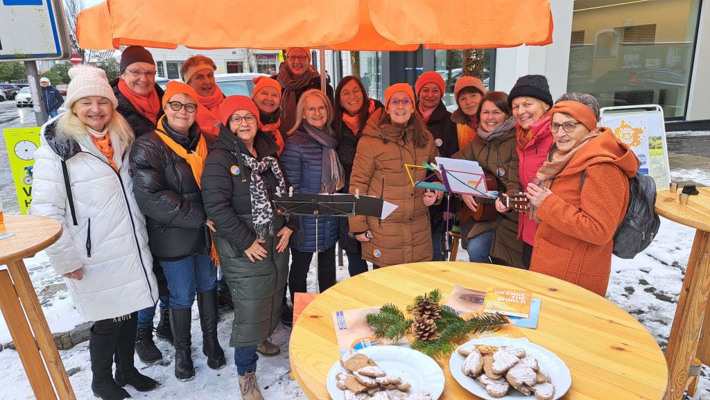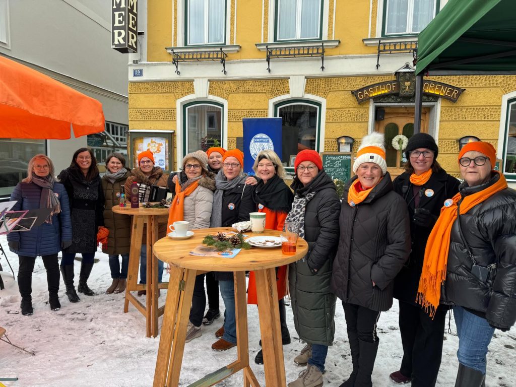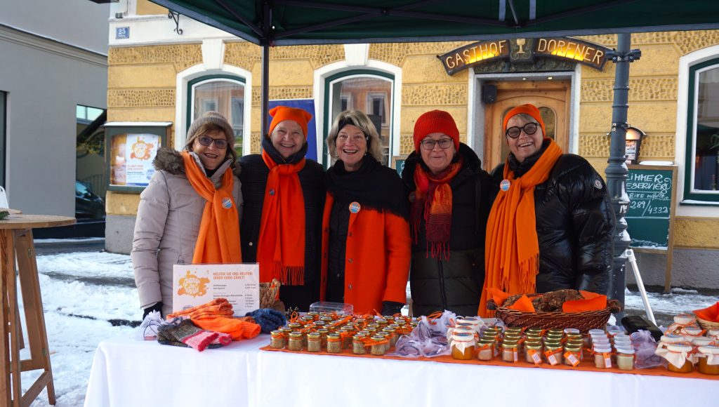 Mit der leuchtenden Farbe Orange und im Rahmen der internationalen Kampagne „Orange the World“ setzten die Rohrbacher Soroptimistinnen am 23. November 2024 beim Wochenmarkt in Rohrbach ein eindrucksvolles Zeichen gegen Gewalt an Frauen.