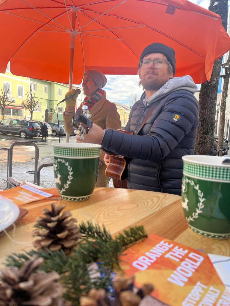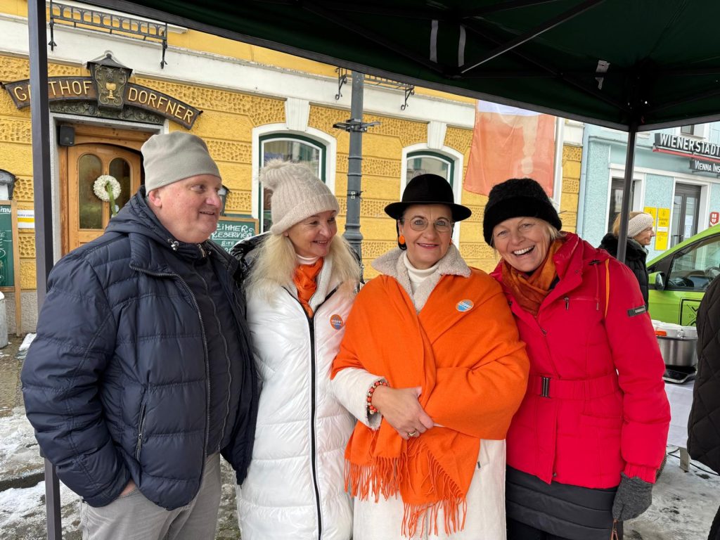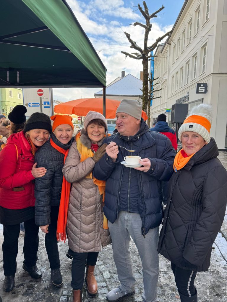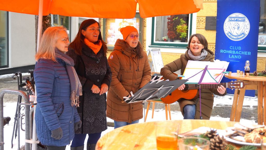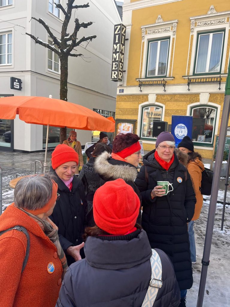 Mit der leuchtenden Farbe Orange und im Rahmen der internationalen Kampagne „Orange the World“ setzten die Rohrbacher Soroptimistinnen am 23. November 2024 beim Wochenmarkt in Rohrbach ein eindrucksvolles Zeichen gegen Gewalt an Frauen.