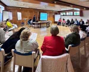 Begrüßt wurden die Clubschwestern von Stiftskämmerer Markus Rubasch, der kurz über den Prämonstratenser Orden und das Stift Schlägl berichtete. Unionspräsidentin Sabine Mach schickte ihre Botschaft via Videocall an die Teilnehmerinnen. Im Anschluss informierten die Vortragenden (Elfriede Haindl, Barbara Friedau, Claudia Deiss, Andrea Rockenbauer) über die Aufgabe Soroptimistin zu sein und die Österreichische Union; über UNO und OSZE (Soroptimist International hat NGO-Status bei der UNO) sowie die Istanbul Convention, mit der 13 europäische Staaten im Mai 2011 im Europarat die Verhütung und Bekämpfung von Gewalt gegen Frauen und häuslicher Gewalt beschlossen haben. Auch die österreichische Bundesregierung hat sich damit dem Schutz der Frauen verpflichtet.